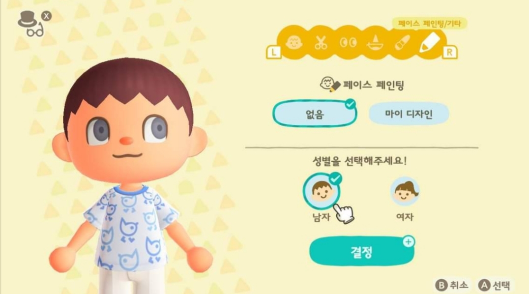 이 캡처 화면은 게임 진행 중에 거울에서 외모 변경하기를 한 이미지예요. 처음 시작할 때는 병아리옷으로 절대 시작할 수 없답니다. 일단 성별 선택 및 외모 변경 인터페이스는 동일하답니다.