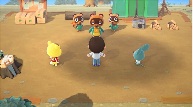 콩돌이와 밤톨이를 따라 너굴 안내소로 갑니다.. 작은 연설을 한 후 너굴은 당신과 다른 마을 사람들에게 텐트를 세울 장소를 찾아 달라고 요청할 것입니다.