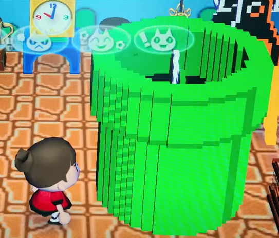 하지만 닌텐도는 이전에 닌텐도 Wii의 타운으로 놀려가요 동물의 숲과 튀어나와요 동물의 숲에서 슈퍼마리오 테마 가구를 이스터에그로 선보인적이 있습니다.