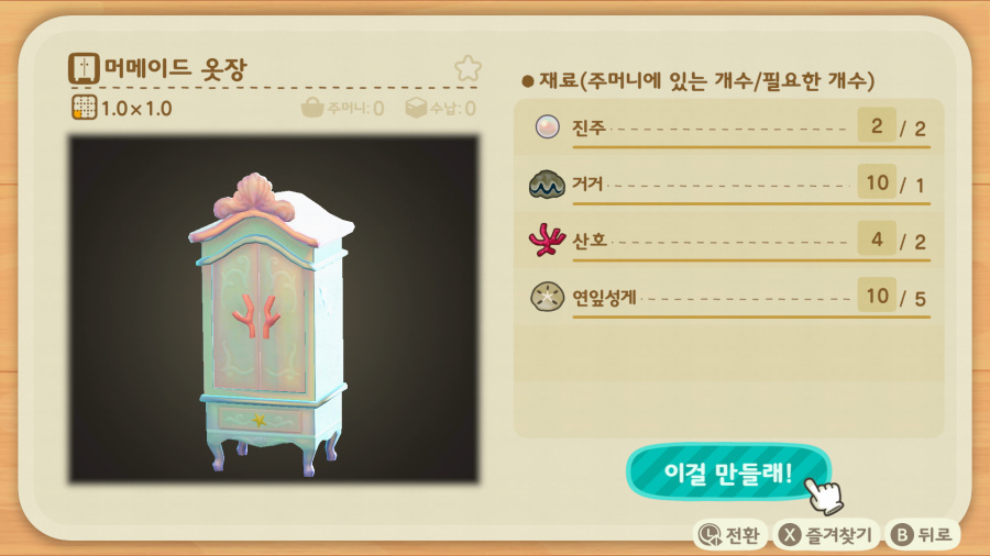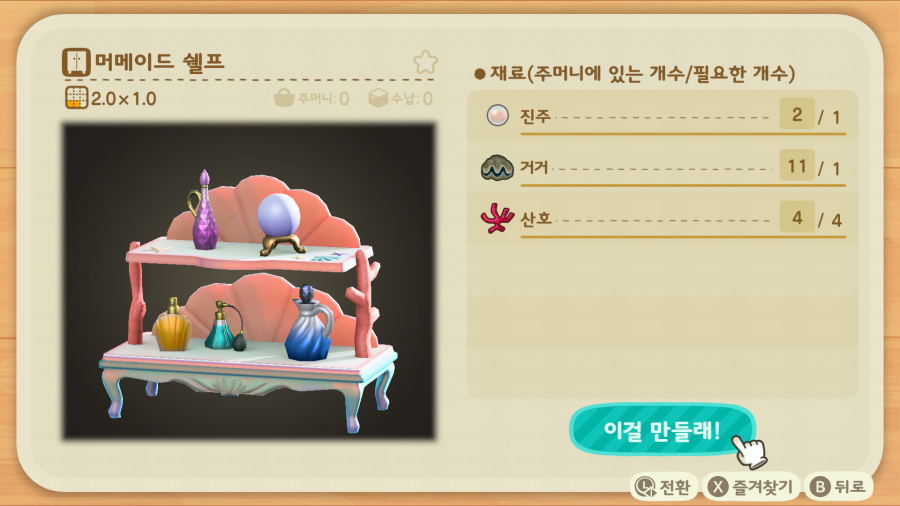 모든 모메이드 가구를 만들려면 진주는 20개 이상 필요하니깐요.