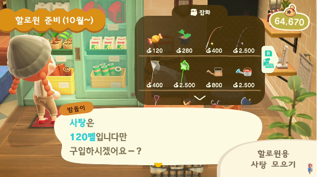 할로윈 이벤트의 사탕은 10월 31일 토요일 오후 5시부터 우리는 펌킹과 마을 주민에게 사탕을 선물할 수 있습니다.